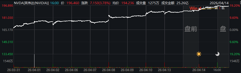 行情数据显示,周二该公司股价收涨3.8%,报于196.51美元。在这轮始于3月31日的最新日线十连涨行情中,英伟达市值累计增加了7615亿美元,约合人民币5.19万亿元。