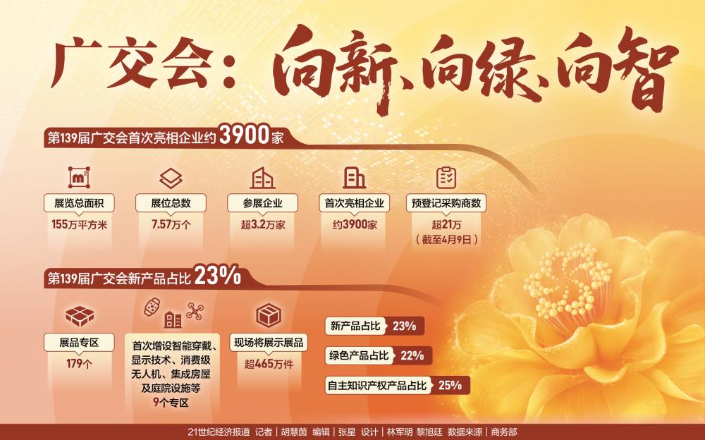 本届广交会展览总面积达155万平方米,展位7.57万个,参展企业超3.2万家——三项核心指标均超过往届,其中,约3900家企业首次亮相。据悉,第139届广交会第一期以“先进制造”为主题,包括电子家电、工业制造、照明电气、五金工具、车辆及两轮车等5大板块19个展区,一场链接全球的先进制造贸易盛宴正式启幕。