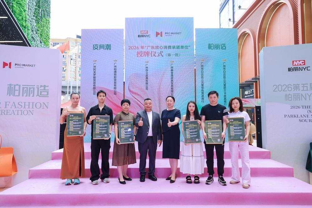 柏丽控股集团副总经理刘利彪发布了《柏丽NYC未来三年产业升级路线图》,明确将聚焦智能穿戴皮具、数字化展厅、空间再造三大方向,全面推动产业向新、向智、向绿升级。与此同时,现场还为广州阿芙罗娜贸易有限公司等12家优秀商户授予“广东放心消费承诺单位”牌匾,树立诚信经营标杆。随后的“皮具潮·柏丽造”时尚大秀,由近28个品牌联袂展示了智能穿戴皮具、环保材料箱包等创新产品,将现场气氛推向高潮。