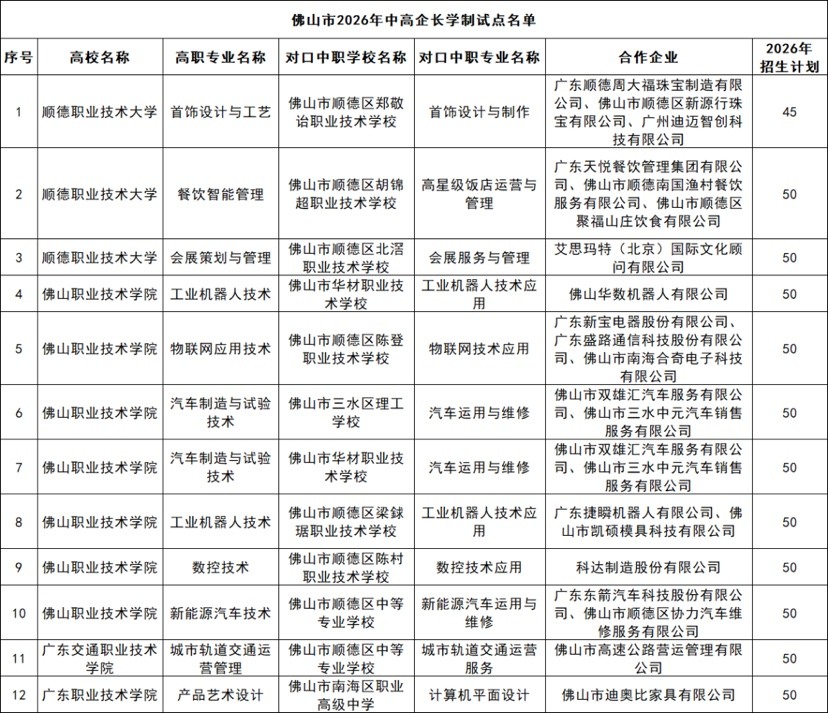 此次试点的专业涵盖装备制造、交通运输、电子信息、文旅服务、创意设计等方向,紧密贴合佛山制造业与服务业协同发展需求。