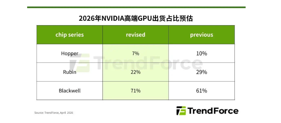 其中,英伟达依然是市场关注的核心。TrendForce集邦咨询表示,由于AI需求强劲,且NVIDIA(英伟达)积极推动芯片用量高的整合型GB/VR机柜方案,预估2026年NVIDIA高端GPU出货量将明显增长,然而年增率将从原本预估约26.8%,微幅下修至近26%。