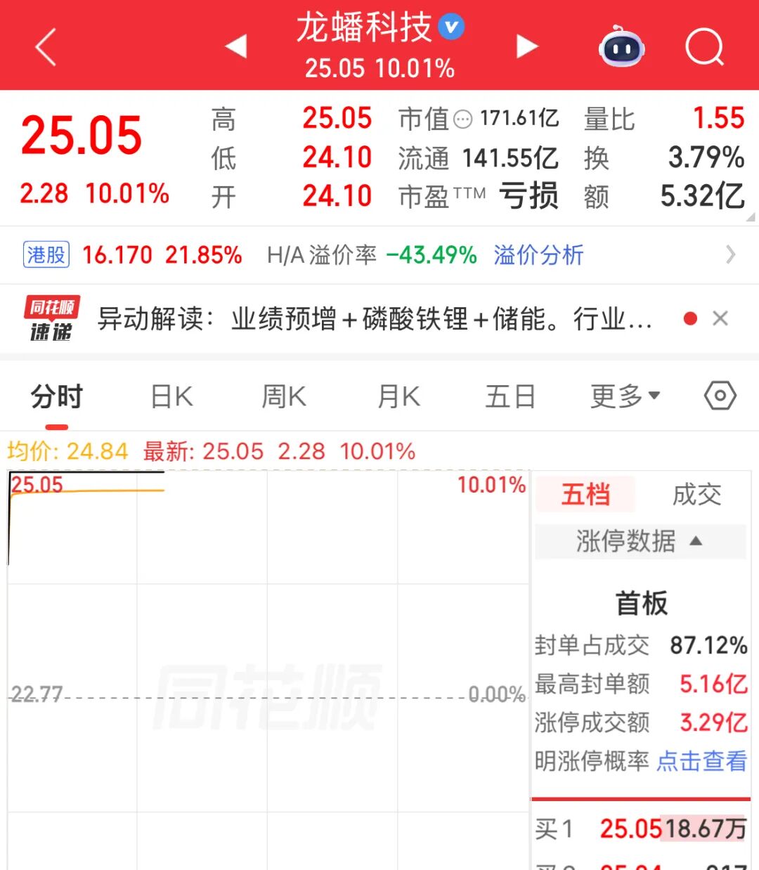 早盘,碳酸铁锂概念走强。 龙蟠科技(603906)开盘仅用不到1分钟时间涨停, 丰元股份、安达科技、 湖南裕能、容百科技 等 多股跟涨。