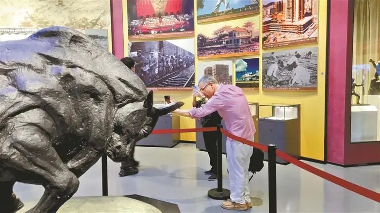 记者团成员参观“大潮起珠江——广东改革开放四十周年展览”,了解广东与深圳改革发展历程。