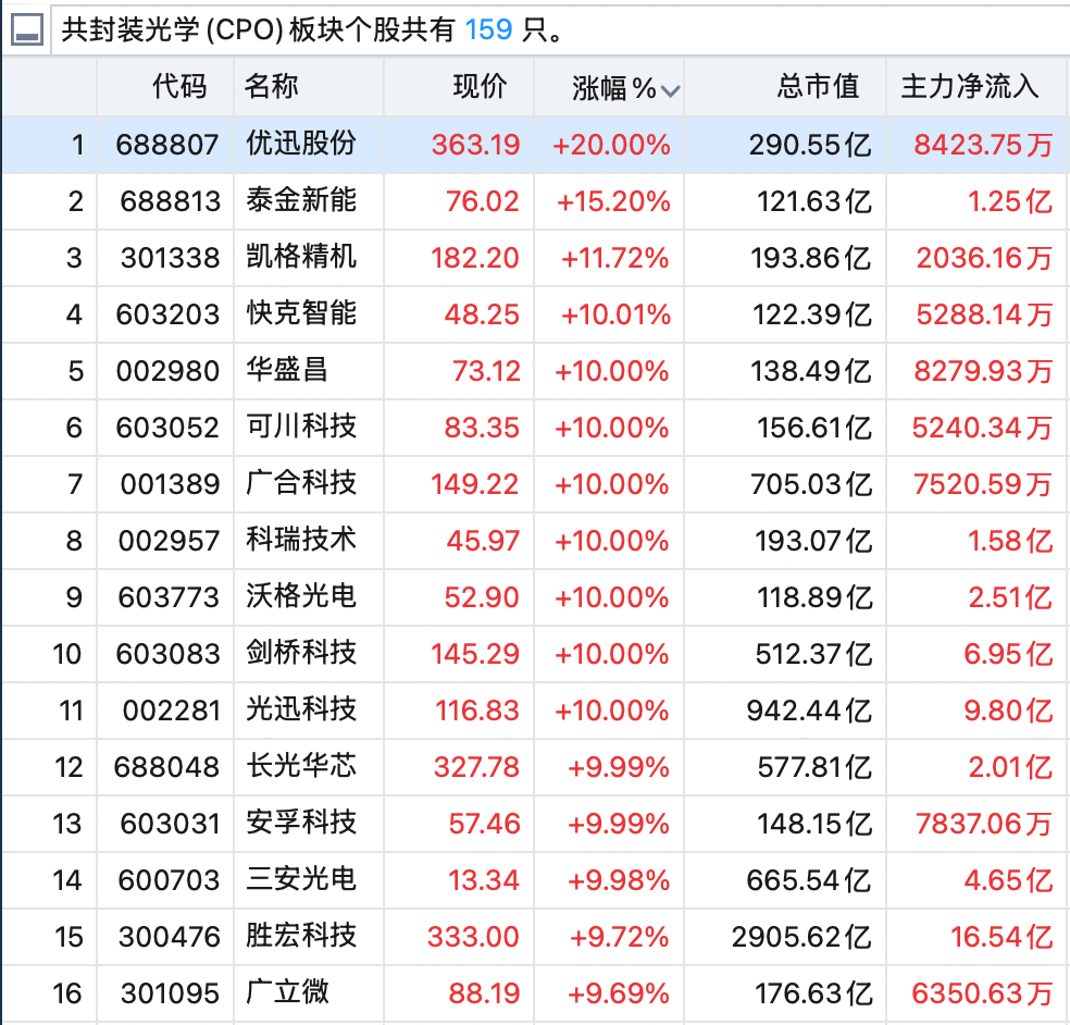 CPO 板块全面爆发