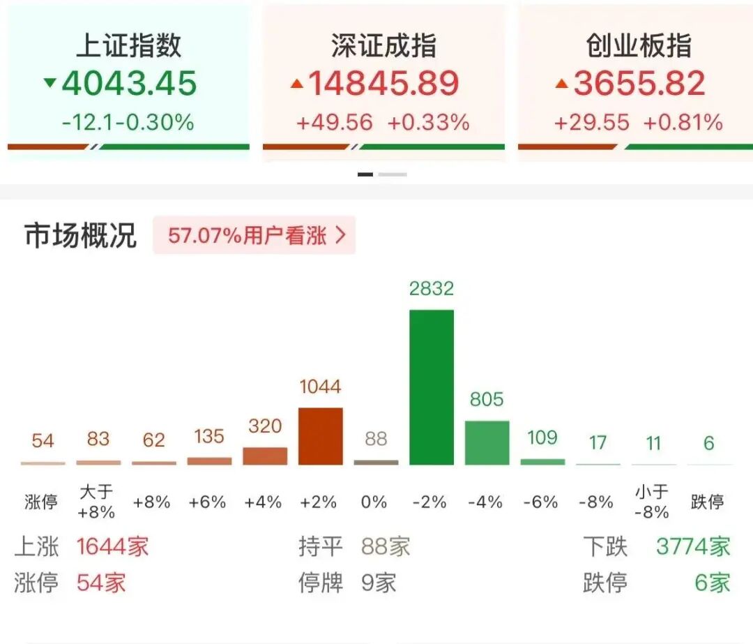 盘面上热点较为杂乱,全市场超3700只个股下跌。