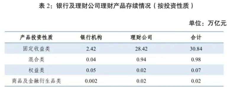 从产品投资性质看,固定收益类产品依然是银行理财的“压舱石”。截至一季度末,固收类产品存续规模达30.84万亿元,占全部理财产品存续规模的96.65%,牢牢占据市场主导地位。不过,这一占比较去年同期减少0.57个百分点,较2025年末也下降0.44个百分点。