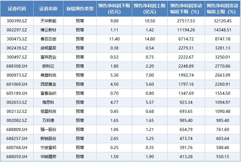 此外,德明利(001309.SZ)、德新科技(603032.SH)、石大胜华(603026.SH)等公司预计今年第一季度实现扭亏为盈。