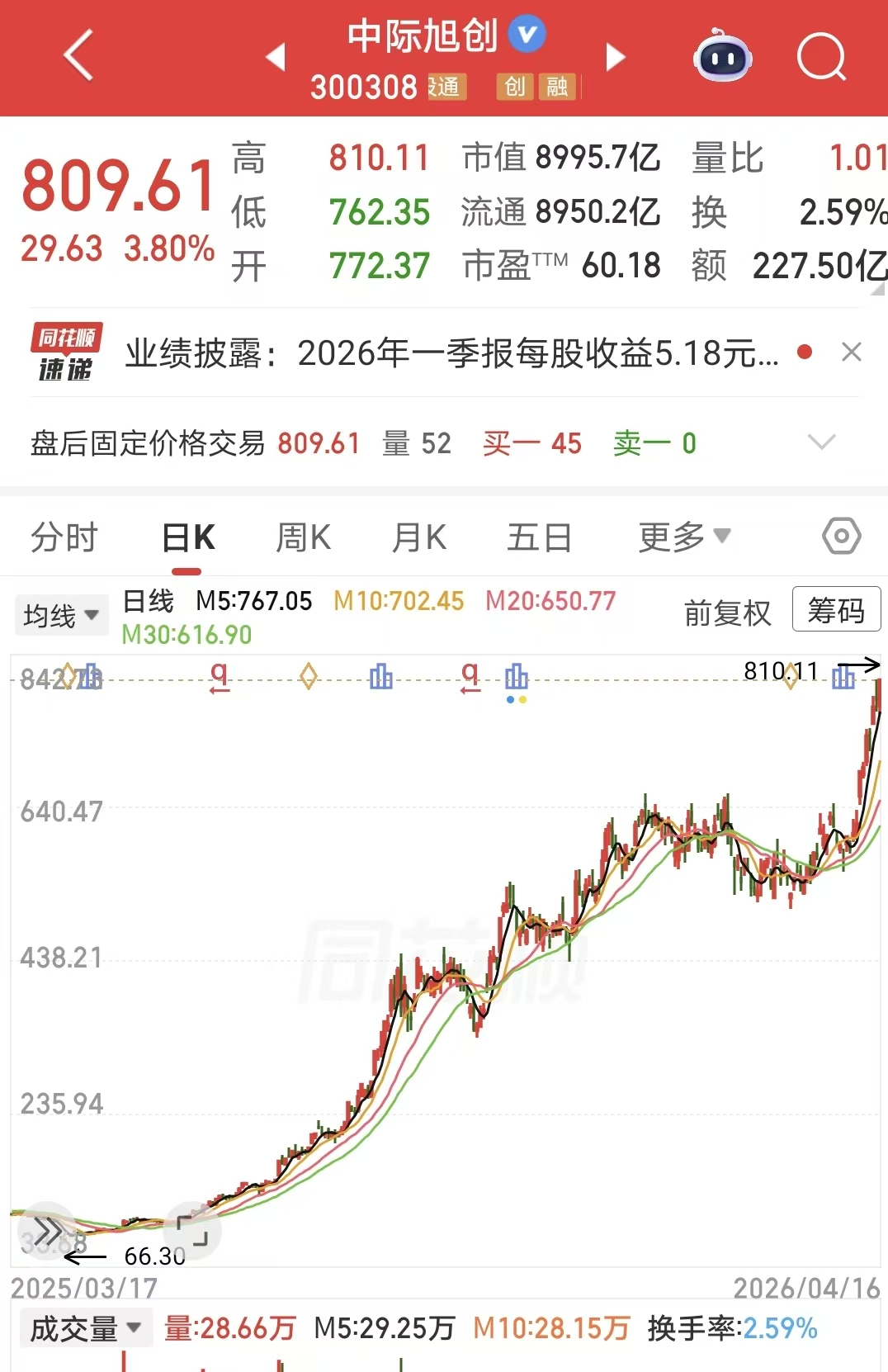 4月16日,A股光模块三龙头“易中天”均呈涨势,新易盛股价收涨8.15%,天孚通信股价收涨7.53%,中际旭创股价收涨3.8%。2025年至今,中际旭创股价累计涨逾550%,总市值逼近9000亿元关口。