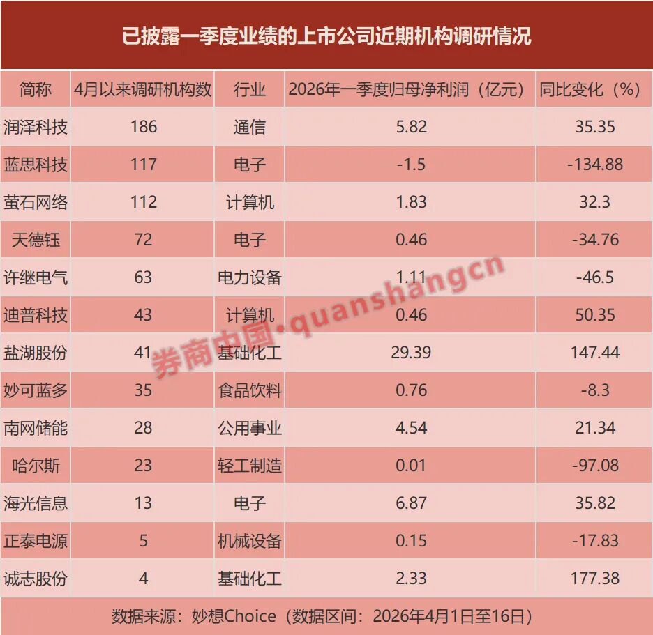 随着近期多家A股上市公司率先披露一季报,机构也火速对相关公司进行调研。