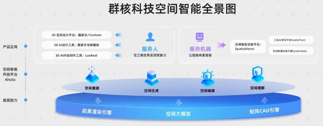 其产品矩阵,包括国内最大空间设计平台酷家乐、其海外版Coohom、3D AI内容创作工具LuxReal、新一代空间智能解决方案SpatialVerse、云原生工业AI孪生平台SpatialTwin。