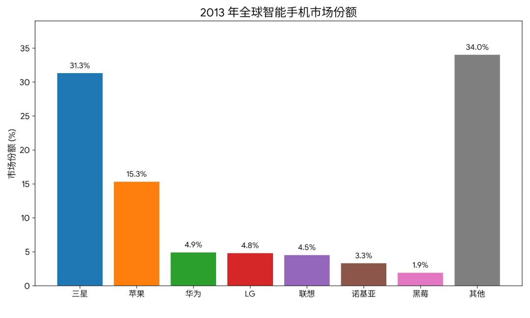 在全球智能手机市场的份额已跌至约3%,彻底跌出前五,被三星、苹果以及众多安卓品牌远远甩开。
