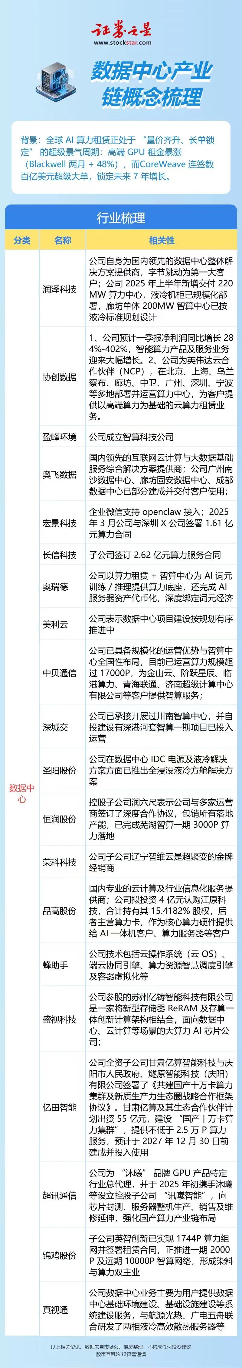 背景:全球AI算力租赁正处于“量价齐升、长单锁定”的超级景气周期——高端GPU租金暴涨(Blackwell两月+48%),而CoreWeave连签数百亿美元超级大单,锁定未来7年增长。