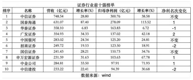 随着国信证券于4月17日晚交出2025年成绩单,证券行业前十座次最终落定。