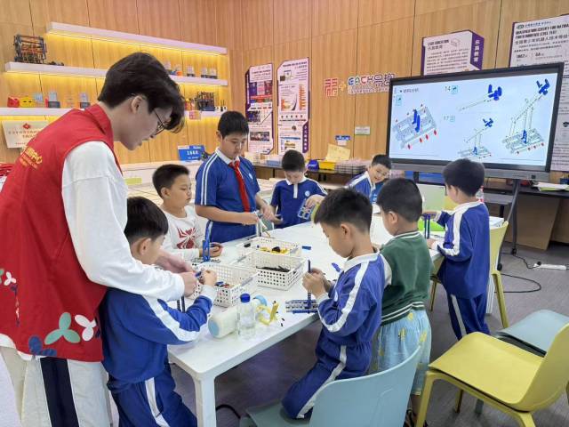 真实商业场景也向少年创客敞开大门,各大市场商场开放真实商业场景,为少年创客提供了从观察市场、捕捉需求到动手实践、打磨产品的完整体验;由华强北街道联合洛克特视效打造的共创文化空间,则成为能让学生在数字创意场景中完成“观察—实践—创造”的一站式研学基地;华强北将党群服务中心免费开放为训练空间,引入市科学馆优质资源,每年开设超百堂机器人编程、无人机操作等公益课程,为少年创客搭建起免费的学习平台;AI夜校面向不同年龄段人群开放,从启蒙教学到实战演练,形成了覆盖全成长周期的学习链条。