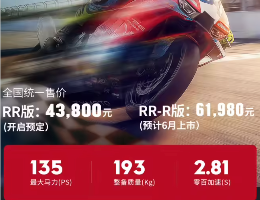 赛道基因是高端摩托的核心标签,“冠军同款”直接拉动终端销售,张雪机车两款主力仿赛车型,短时间内锁单破万台。