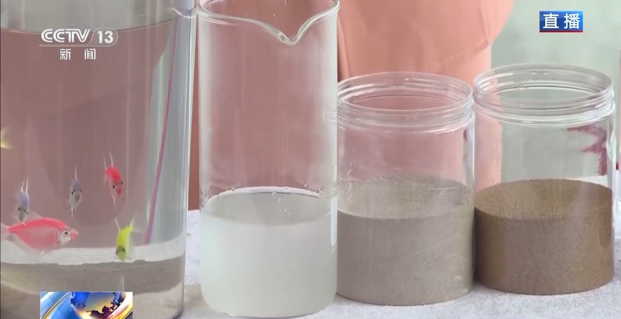比如鱼缸和绿植,看似平常,内含防水保水的“黑科技”,吸引了众多客商。里面的沙子经过保水剂处理后,可用于沙地和盐碱地改良。具体做法是:挖开土层,底层铺上防水沙,中间加保水剂,再覆一层普通沙子,就能锁住水分,且不影响环境。这款保水剂可吸收并储存自身重量1000倍以上的水分。