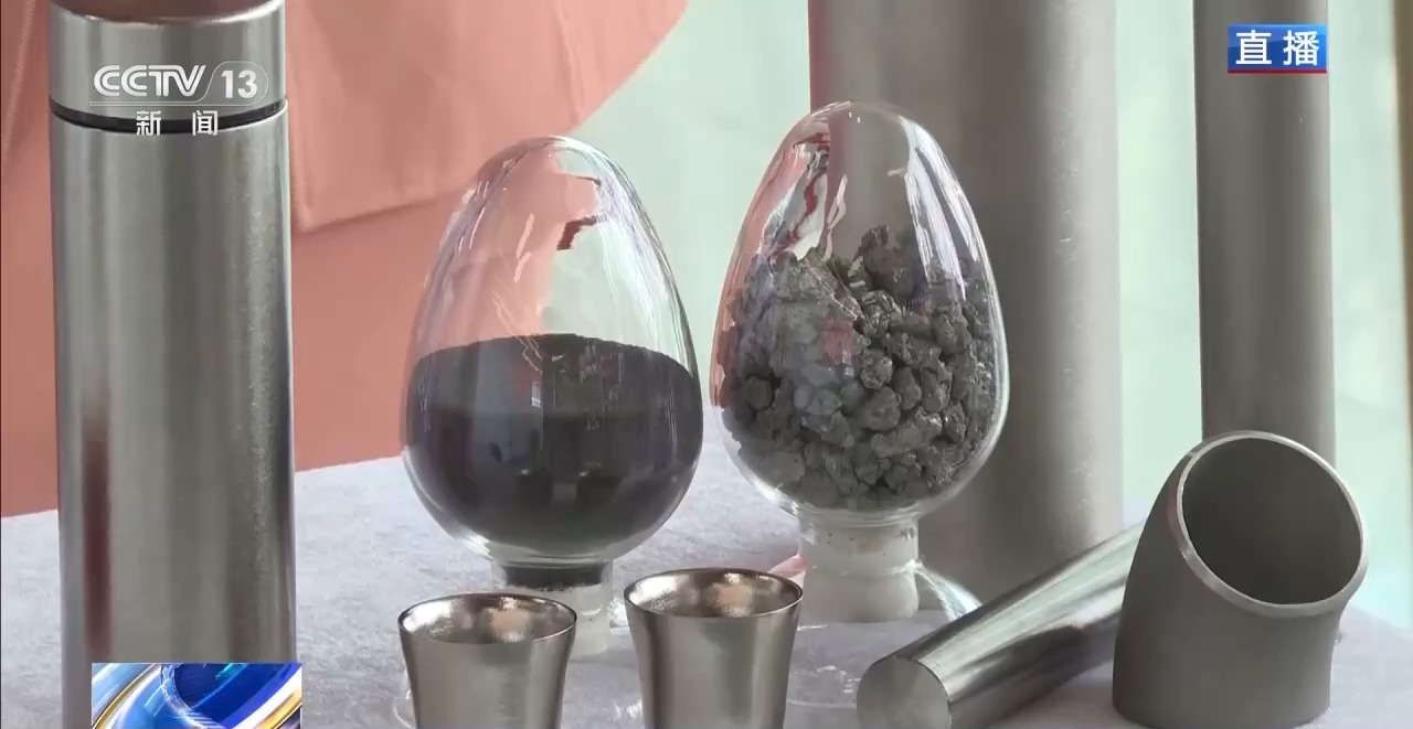 在《先进制造》主题展中,类似的好物和创新产品还有很多。比如钛金属水杯。钛合金过去多用于工业及飞机制造。随着钛金属产量提升,钛合金产品正走进日常生活。这款水杯便是例证——该展位不仅出口原材料,也开始推广成品。