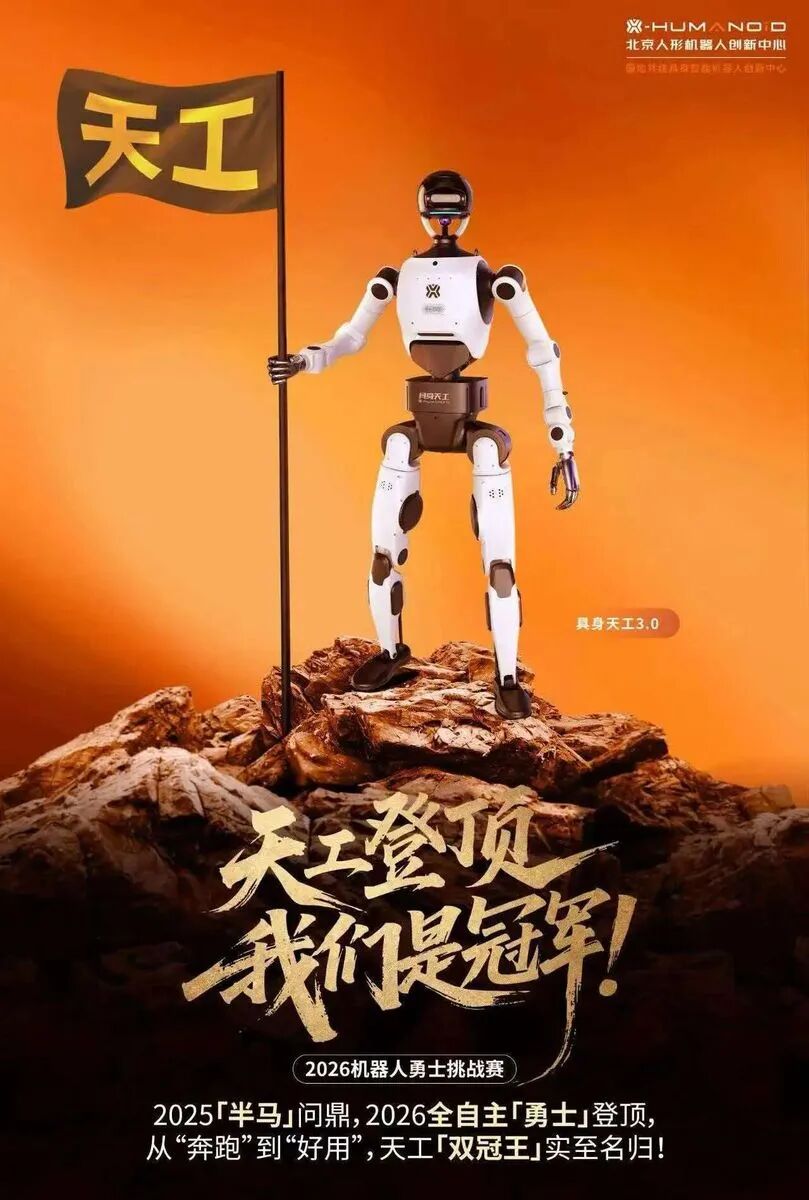 此外,在前一日(4月18日)举行的首届北京亦庄机器人勇士挑战赛中,北京人形机器人创新中心旗下的具身天工3.0以全自主表现 斩获全球首个冠军 , 加冕“马拉松+勇士挑战赛”双冠王 。