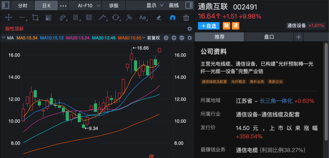 机构研报指出,随着NVIDIA高功耗算力平台全面放量、海外CSP启动GW级AI数据中心集中建设,液冷的核心矛盾已从“是否采用”转向“谁能交付、谁能放量”。 液冷不再是技术选择题,而是AI算力基础设施中确定性最高、节奏最清晰的增量环节之一。 光纤概念快速走强,通鼎互联3天2板,长飞光纤、中天科技、亨通光电跟涨。