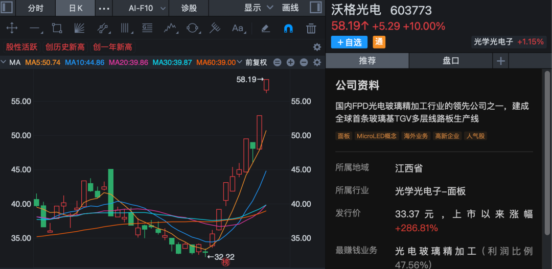 玻璃基板概念延续强势 玻璃基板概念延续强势,沃格光电走出8天5板,帝尔激光、彩虹股份、戈碧迦、美迪凯、雷曼光电、五方光电冲高。