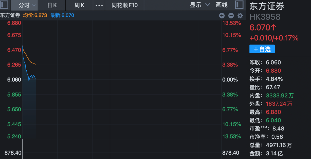 港股方面,恒生指数和恒生科技指数均上涨。 电气设备、半导体、医药生物板块涨幅居前,油气股走弱。截至发稿,中国石油股份跌超2%,中国海洋石油跌超1%。 港股东方证券一度涨超13%,截至发稿,涨幅几乎全部回吐。 消息面上,东方证券A股19日发布筹划重大事项的停牌公告,称公司正在筹划通过发行A股股份及支付现金方式收购上海证券100%股权事宜,东方证券A股股票于4月20日开市起停牌,预计停牌时间不超过10个交易日。