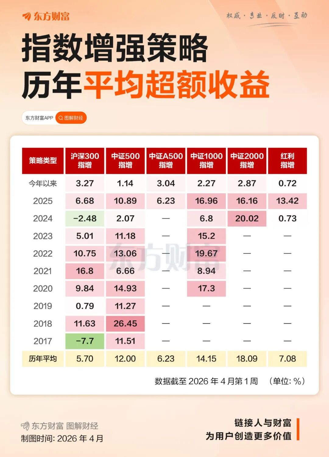 指数增强策略特征相对明显,既保留了指数基金“分散风险、成本相对较低、规则透明”的优点,又试图通过主动操作“打败指数”,是介于“纯被动指数基金”和“纯主动管理基金”之间的中间形态。