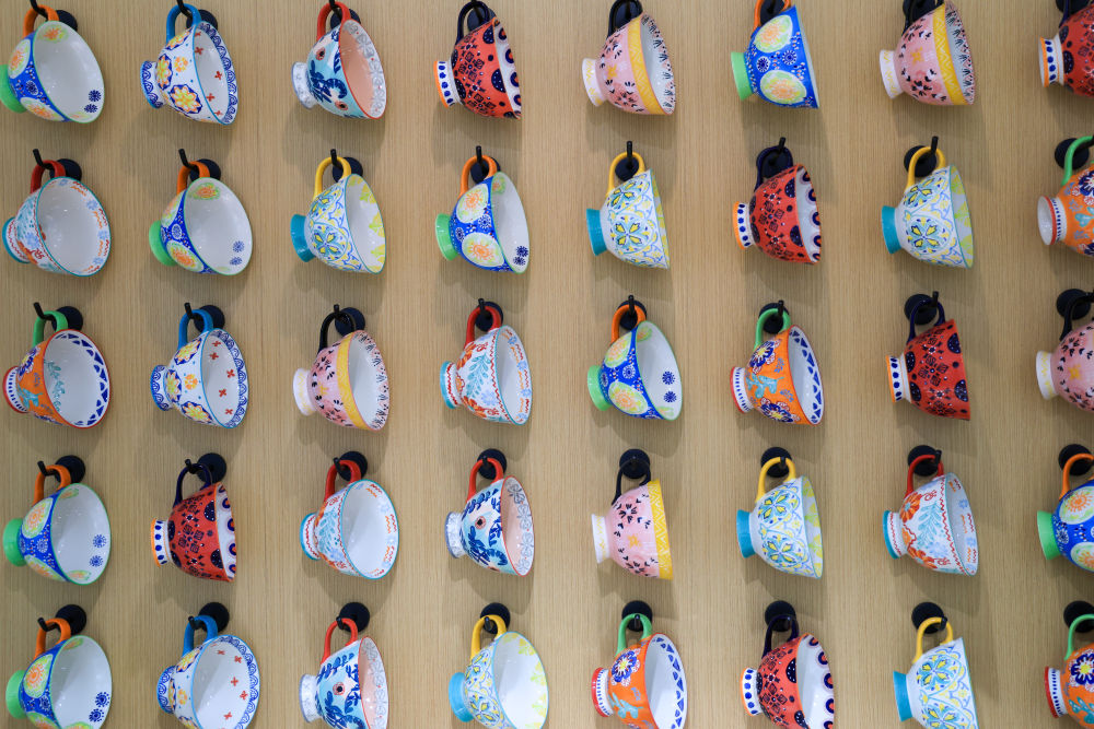 潮州市松发陶瓷有限公司的展厅里,一排方形瓷盘拼成的《富春山居图》尽显东方美学韵味。这家企业深耕生活瓷40年,去年推出的一款手绘早餐杯销售额达4000万元,成为爆款单品。