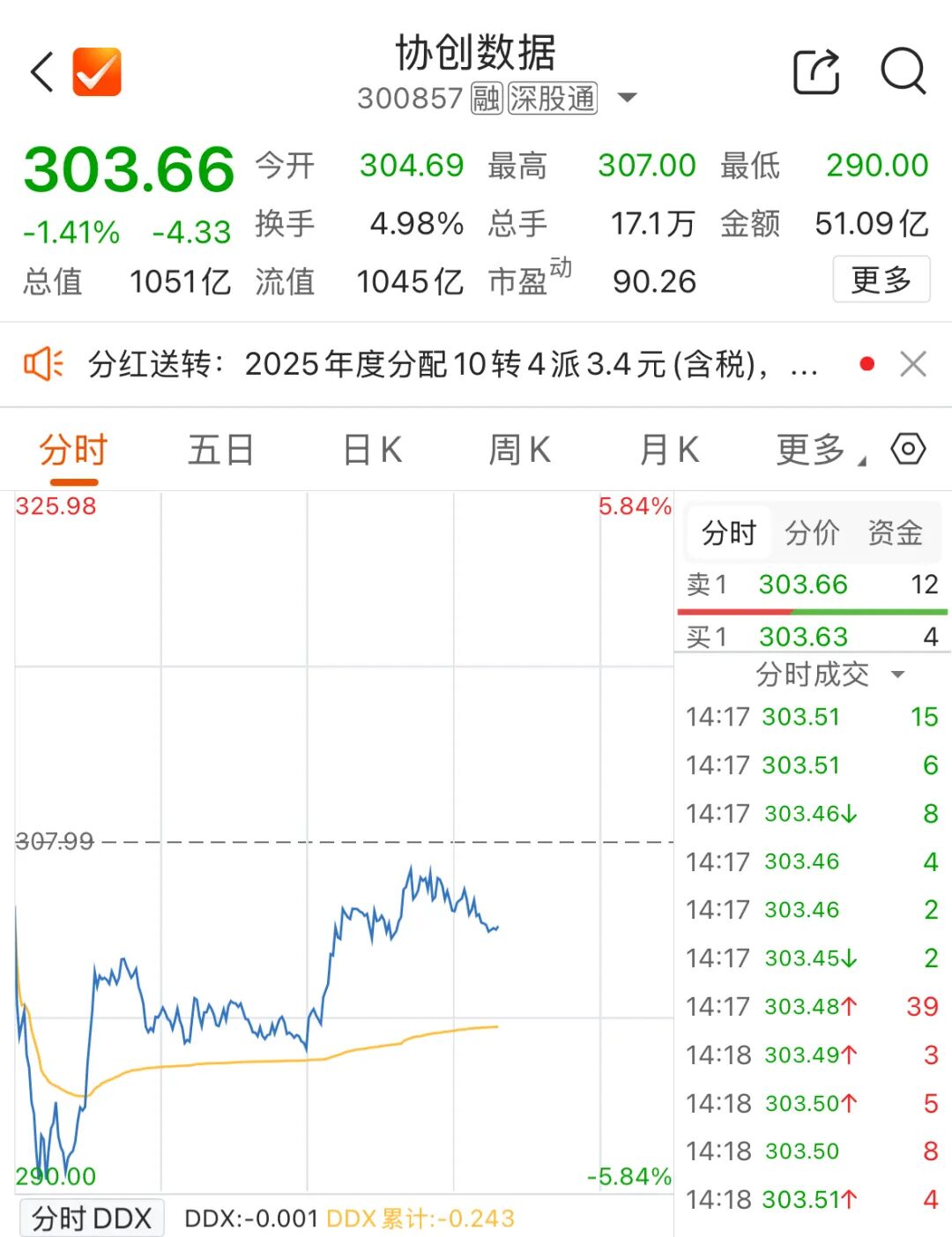 从股价表现来看,协创数据年初以来涨幅亮眼。4月17日盘中一度创下322元/股的历史新高,年内累计涨幅达90.89%。 截至4月21日发稿,协创数据最新股价报303.66元/股,跌1.41%,总市值约1051亿元。
