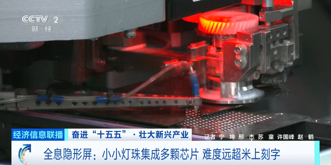 而这一技术的关键,就藏在一颗颗看似简单的小灯珠里。显微镜放大100倍后能看到,小小一颗灯珠内竟能集成4到5颗用于控制和发光的芯片。