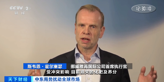 挪威雅苒国际公司首席执行官 斯韦恩·霍尔塞瑟: 受冲突影响,目前损失的化肥及养分,相当于每周少生产约200亿份餐食。