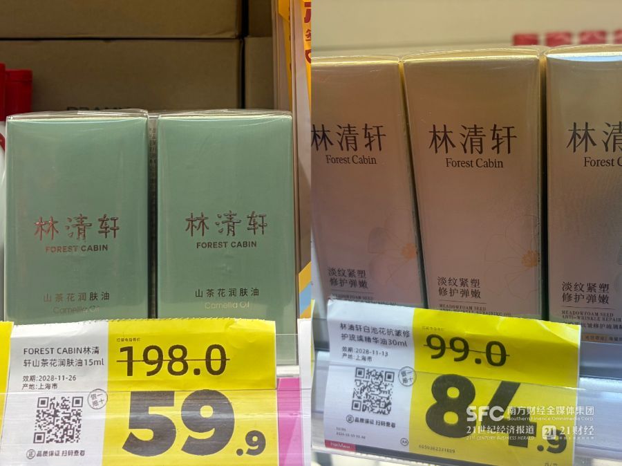 进驻线下折扣店的还有定位高端护肤的林清轩。经销商指导价198元/瓶的林清轩山茶花润肤油15ml售价仅为59.9元/瓶,优惠力度很大。