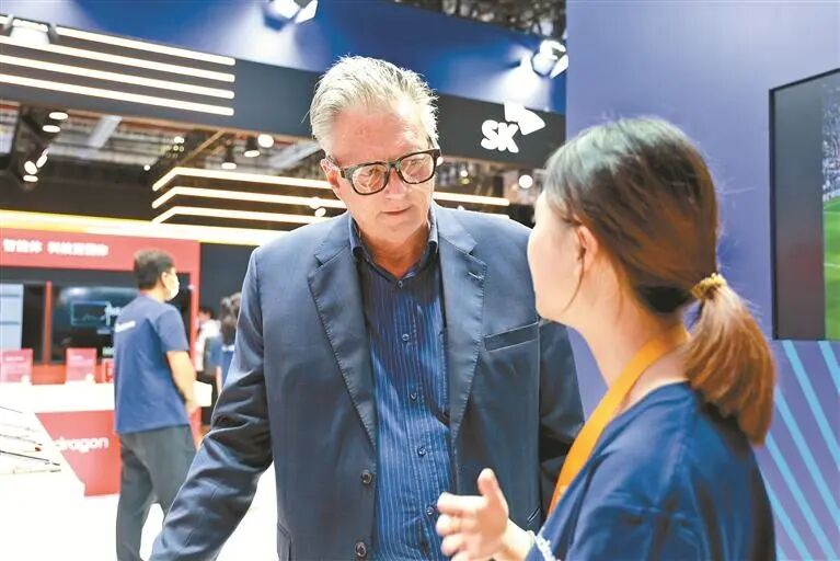 进博会上,外籍友人体验雷鸟AR眼镜。 深圳特区报记者 苗威 摄