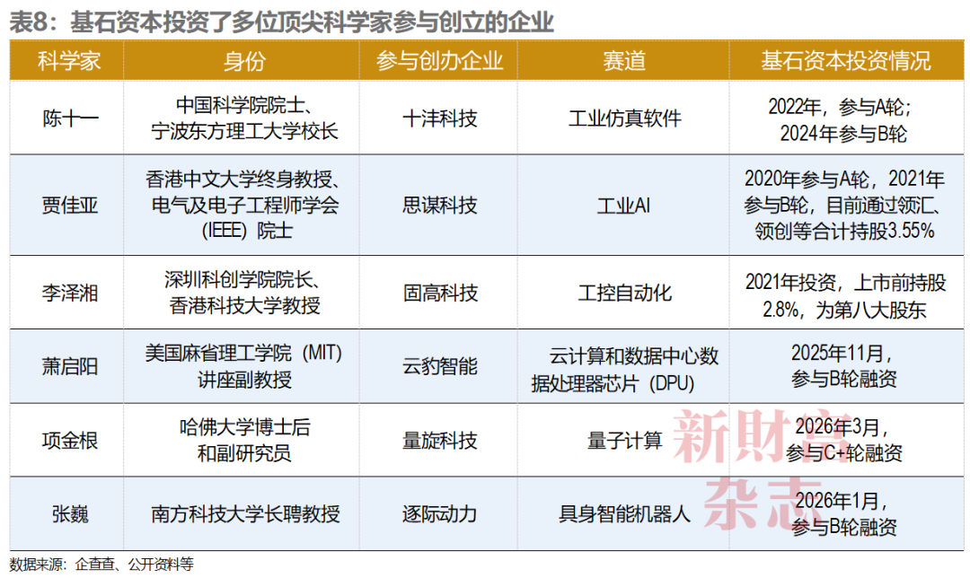此外,基石所投的固高科技,创始人李泽湘为深圳科创学院院长、香港科技大学教授,固高科技上市时,基石资本为其第八大股东。
