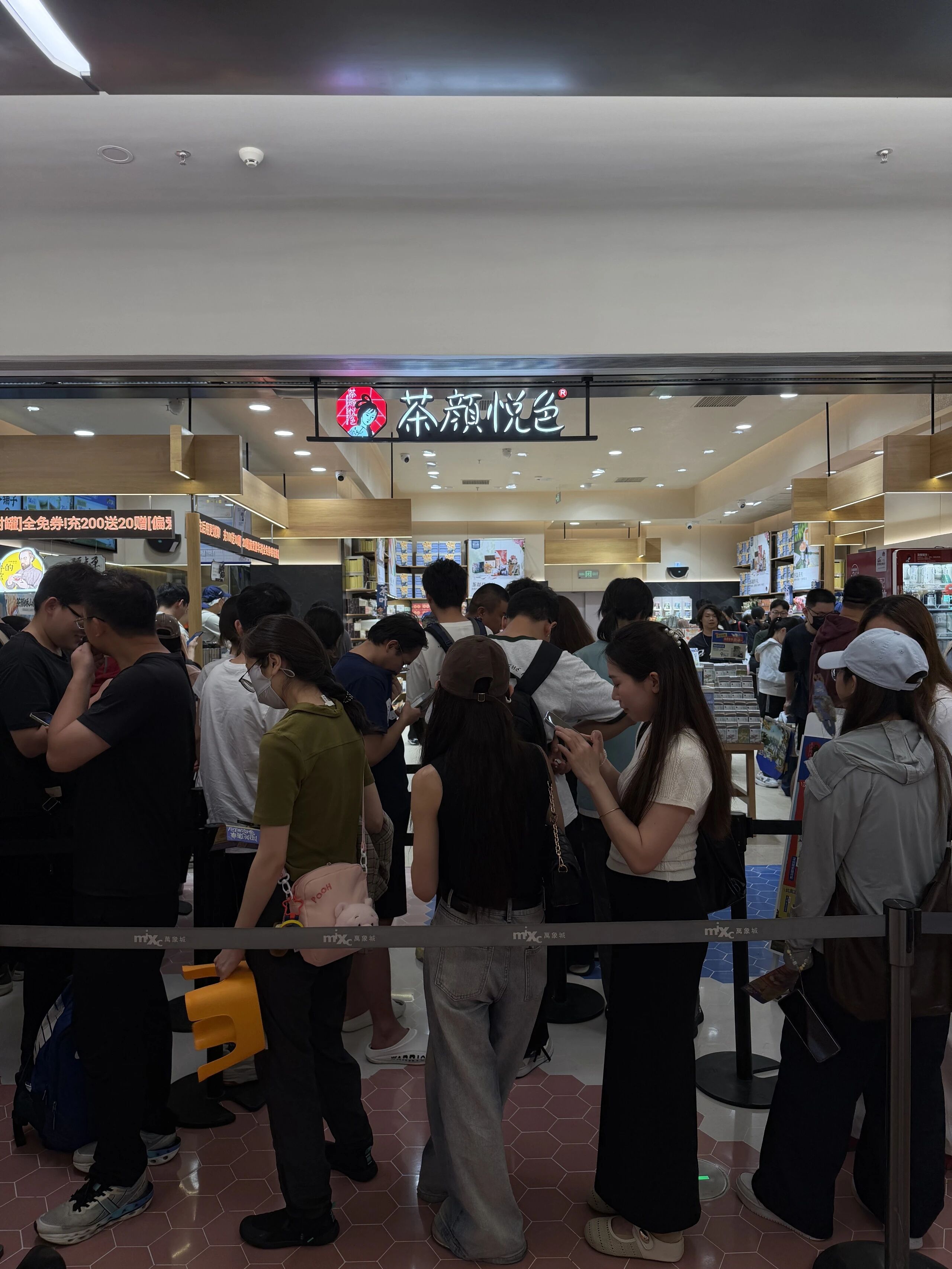 上午10点,时代财经到达茶颜悦色深圳湾万象城店,门店的四个排队区均已爆满。店员告诉时代财经,门店排队时间在2小时起。