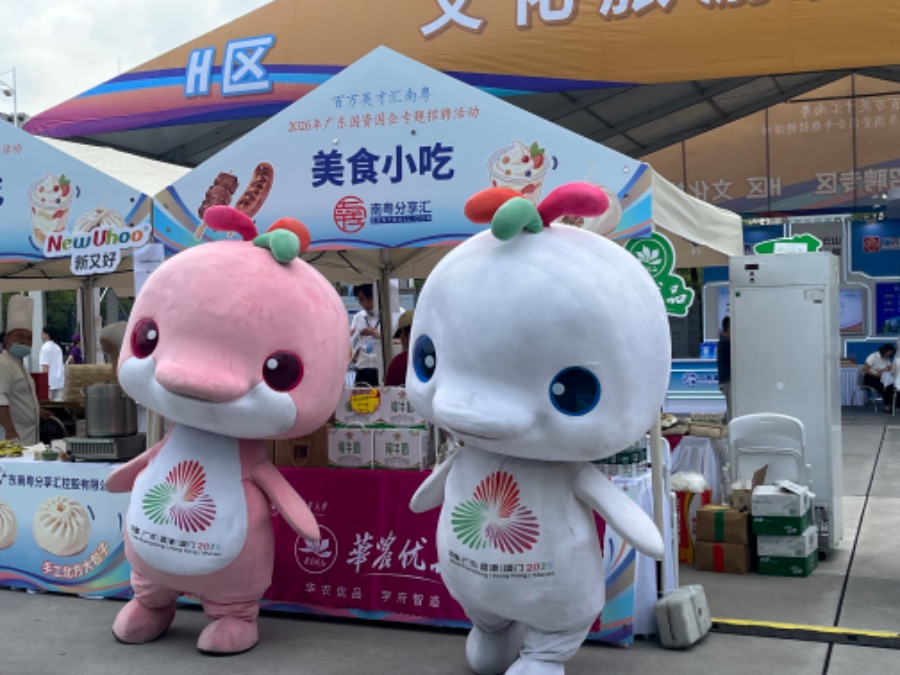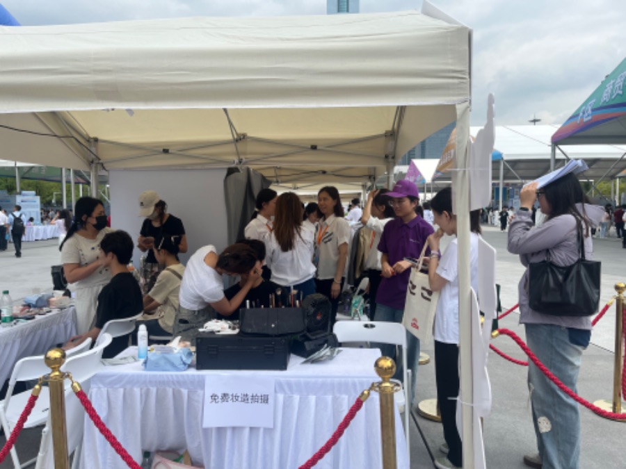 招聘活动设置了多个分区。其中,“人才招聘区”组织企业按照10大产业专区分类,“人才服务区”提供AI招聘服务、直播带岗、职业妆造、医疗服务等服务功能,“人才体验区”带来了各类广东乡村振兴产品、地市名特优新小吃、国企好货与企业礼遇产品。