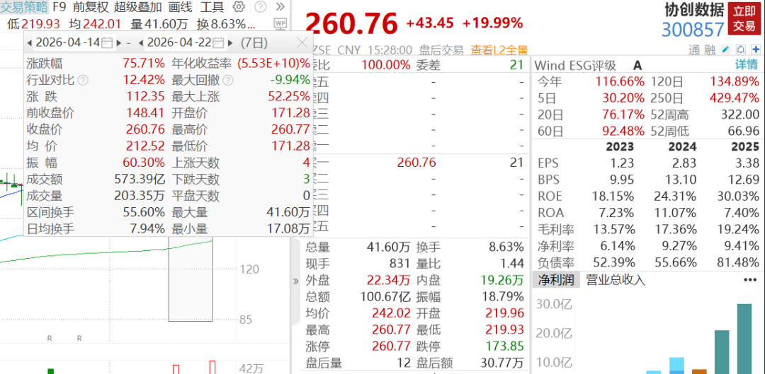 算力租赁概念持续走强,龙头股协创数据触及20CM涨停,市值突破1200亿元,该股近7天涨超75%,年内股价翻倍,累涨近116.66%。宏景科技涨超15%,双双创历史新高,杭钢股份封涨停。