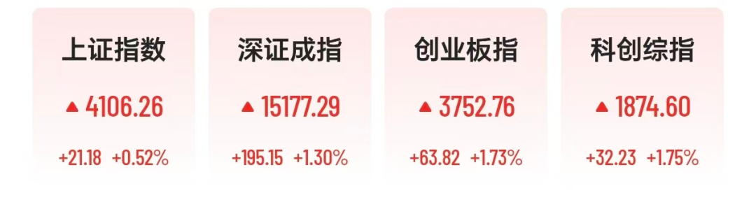 4月22日,市场低开高走,沪指重返4100点,创业板指、深成指均涨超1%。创业板综指创历史新高,突破2015年6月3日的高点。沪深两市成交额2.56万亿元,较上一个交易日放量1512亿元。