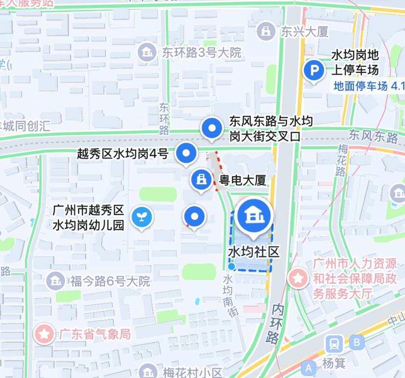 车站主体所在的东风东路南侧,分布着水均社区、水均大街、水均岗幼儿园等,它们均指向同一个老地名——水均岗,这是老广州东部的山岗丘陵之一。