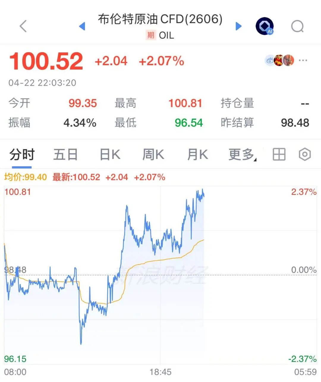国际金银价格持续高位震荡,国际油价直线拉升,ICE布油重上100美元/桶。据新华社报道,美媒称特朗普再给伊朗3至5天停火时间。