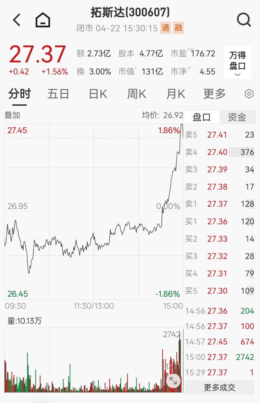 拓斯达4月22日晚间公告称,2026年第一季度实现营业收入5.38亿元,同比增长48.53%;归属于上市公司股东的净利润为4808.33万元,同比增长1147.36%。