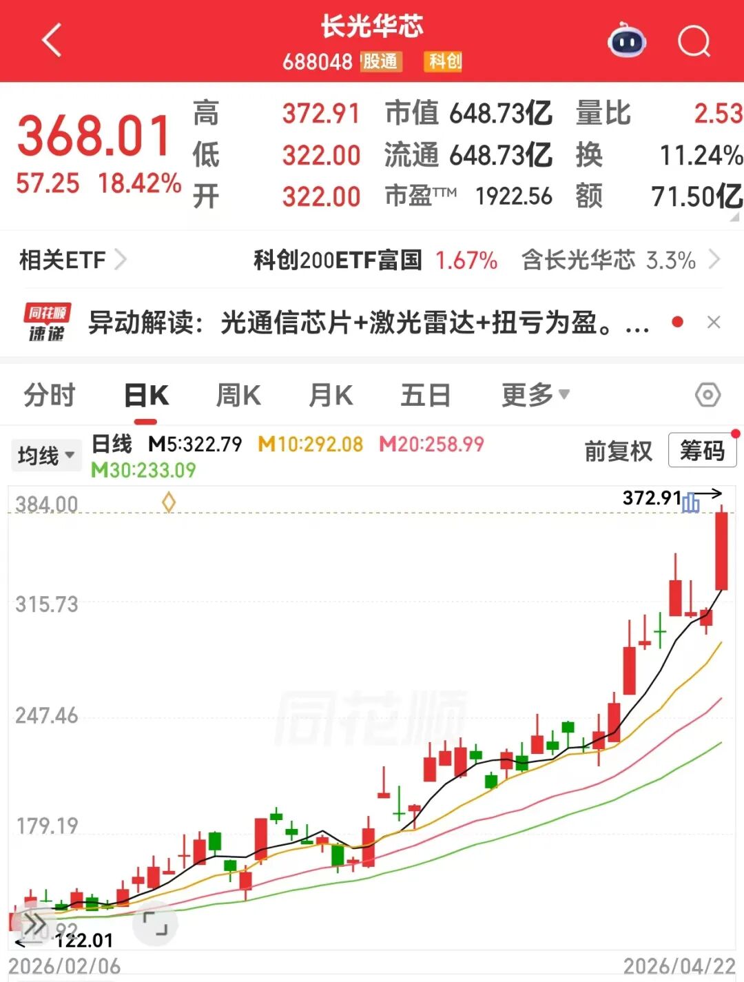 长光华芯则是光通信概念股。值得一提的是,该股已经完成十倍股之旅。2025年初,该股股价最低只有33.25元/股,今天盘中最高价接近373元 /股 ,其间最大涨幅超过10倍。
