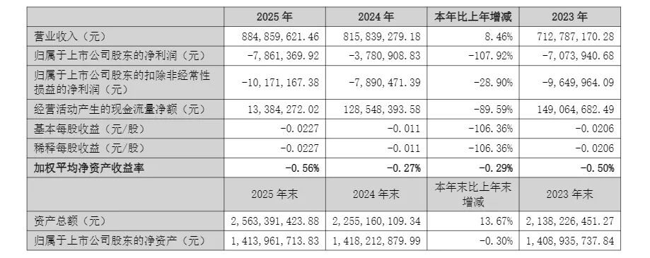 结合公司此前发布的2025年年度报告来看,龙利得2025年全年实现营业收入8.85亿元,同比增长8.46%,但归母净利润为-786.14万元,同比下降107.92%。公司当时解释,业绩未达预期主要系安徽明光龙利得绿色智能文化科创园(一期)于2025年度初步投产,固定资产折旧及项目前期投入对净利润产生一定影响;同时公司计提商誉资产减值准备462.54万元。
