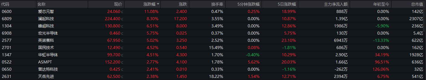 半导体概念表现活跃 澜起科技涨超8%