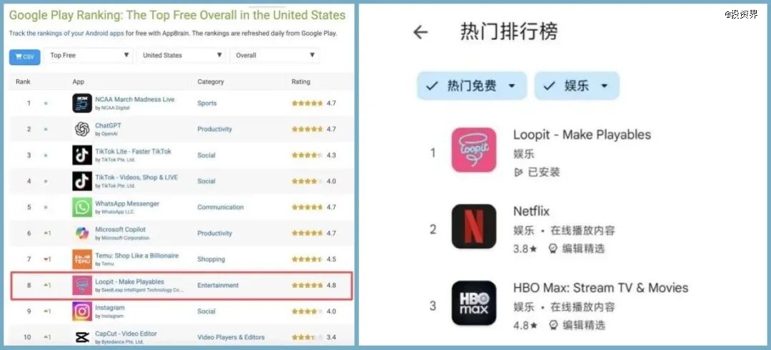 此后,Loopit持续在欧美娱乐排行榜上靠前,找上门的投资人越来越多。行至现在,虽然Loopit仍是一个非常年轻的产品,但聊到“复刻壁垒”时,陈炜鹏坦言并不怕竞争。