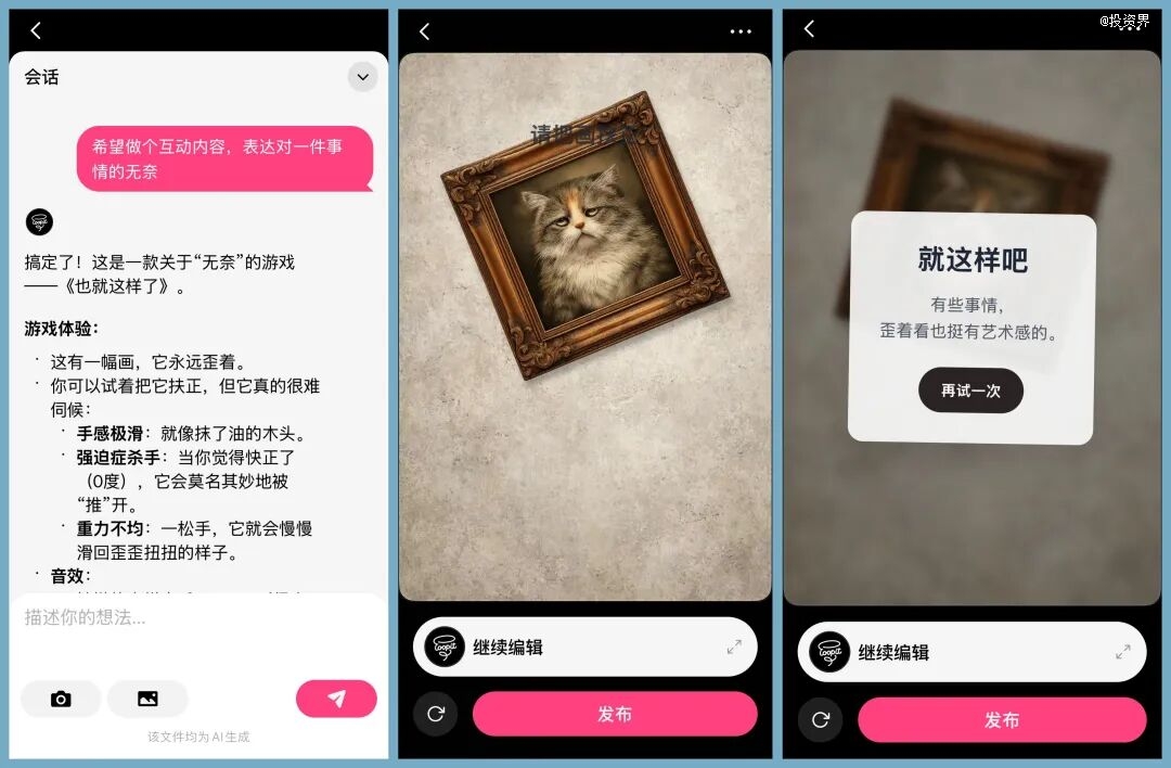 有趣、体验、互动,这些在同时在Loopit上发生。AI降低创作门槛的时代,用户不再只会单向接受内容,而是人与内容在互动,甚至是人与人在围绕内容互动。