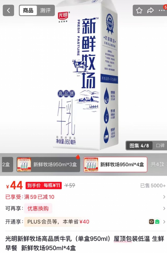 近日,有媒体报道称光明乳业旗下“新鲜牧场”牛奶有“擦边”鲜牛奶的嫌疑,原因是在电商平台上,不少网店对该款商品的介绍以“鲜奶”为宣传语,且有店铺客服称该款产品为“鲜奶”。与此同时,“新鲜牧场”并不是有效注册商标。