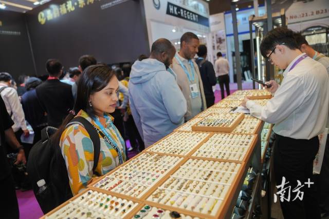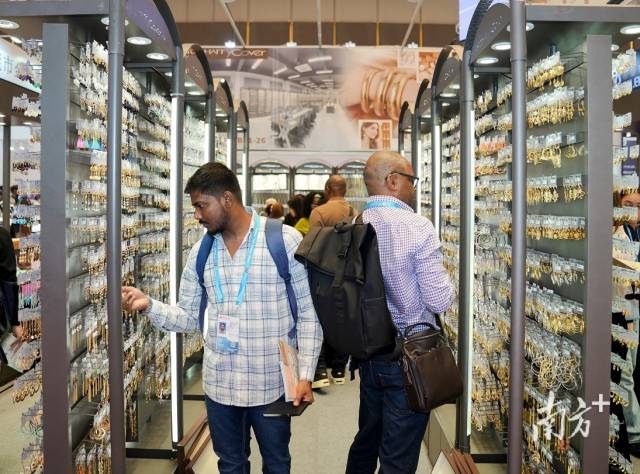 在D区21.2馆,广交会首次为珠宝饰品单独辟出一方天地。佛山市顺德区美飒珠宝有限公司的展位上,一套融合古法掐丝工艺与培育宝石的银饰吸引多位海外采购商驻足。公司海外负责人冯颖贤告诉记者,这是他们第一次参加广交会,“新专区意味着精准流量,让我们获客效率更高了。”她热情展示一款新品珍珠项链:“法式风情加上中国精工,拉丝纹理需要极高的品控标准,这正是中国供应链优势的体现。”