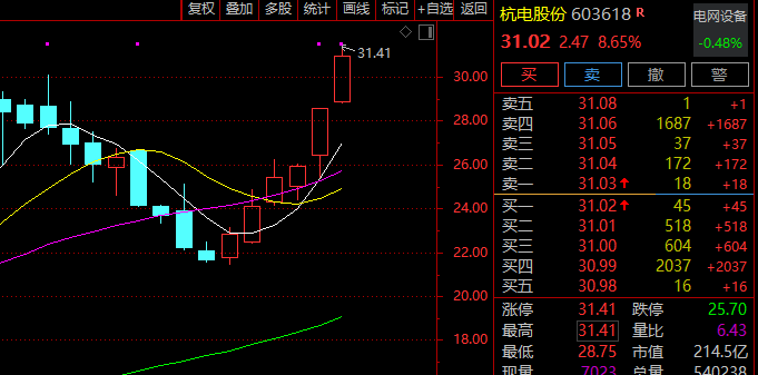 光纤概念延续强势,杭电股份盘中 2 连板,续创历史新高,法尔胜、永鼎股份、长飞光纤、亨通光电、特发信息、通鼎互联跟涨。