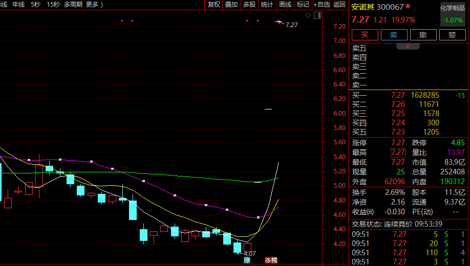 算力租赁概念拉升,安诺其 20cm 涨停,走出 3 连板,超160万买单封死。旗天科技 20cm 涨停,浙文互联、佳华科技、利通电子等跟涨。