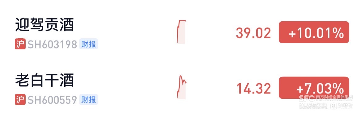 4月23日,迎驾贡酒开盘涨停,老白干酒一度逼近涨停,上午10点后股价涨7%。